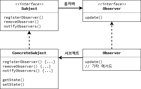 | 한 객체의 변화를 여러 객체에 알려야 할 때 | Observer | 느슨한 결합 |