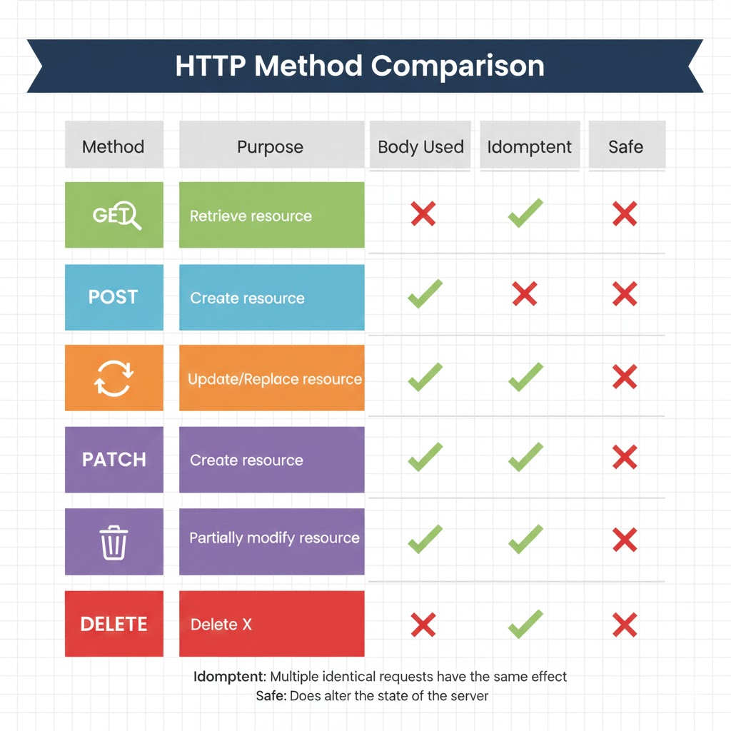 ✅ HTTP 메서드 (GET, POST, PUT, PATCH, DELETE)