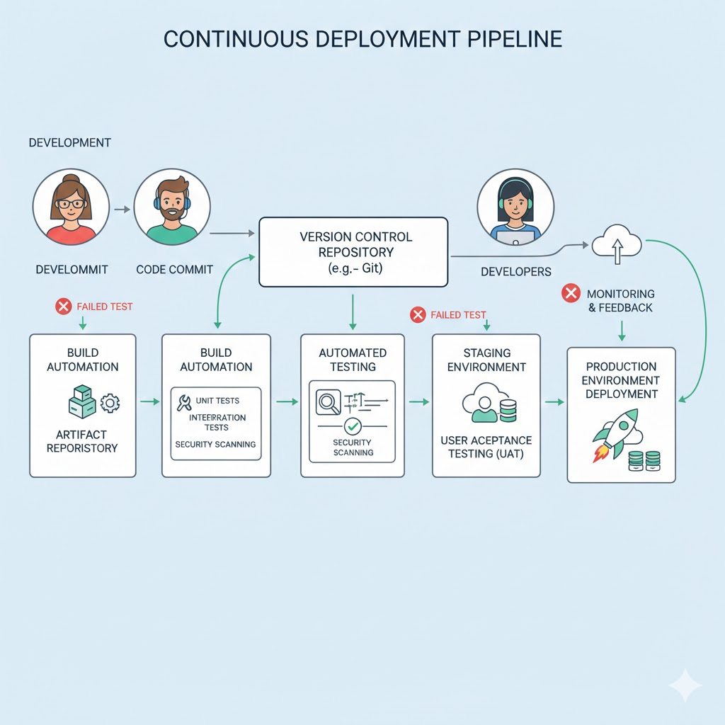 **CD (Delivery)**는 CI를 통과한 코드를 운영 환경에 배포할 준비가 된 상태로 자동으로 만들어두는 것이에요.