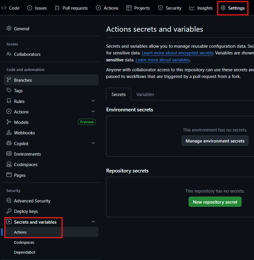 # Repository → Settings → Secrets → Actions