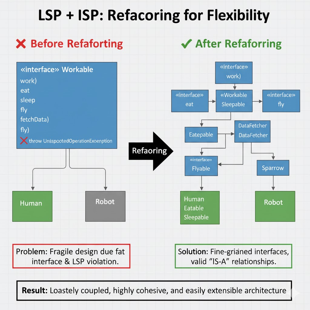 🔹 3. LSP (Liskov Substitution Principle — 리스코프 치환 원칙)
