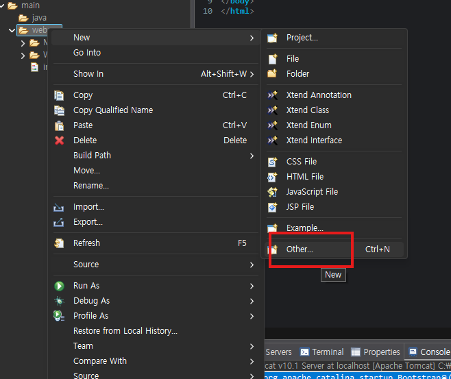 - WebBasic → src → main → webapp 폴더 우클릭