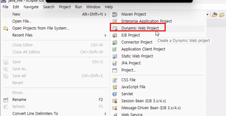 - 또는 File → New → Dynamic Web Project 직접 선택