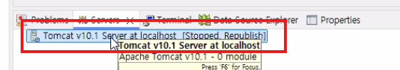- Servers 뷰에서 "Tomcat v10.1 Server at localhost" 더블클릭